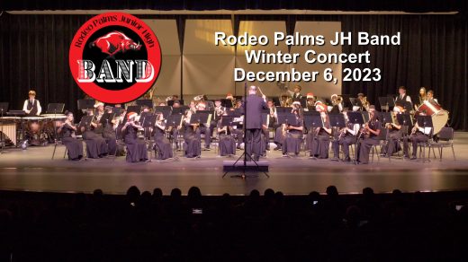 Directed by Theron Sharp, Jamie Nielson, and Jerry Lefner, the Rodeo Palms JH Bands presented a winter concert on December 6, 2023.